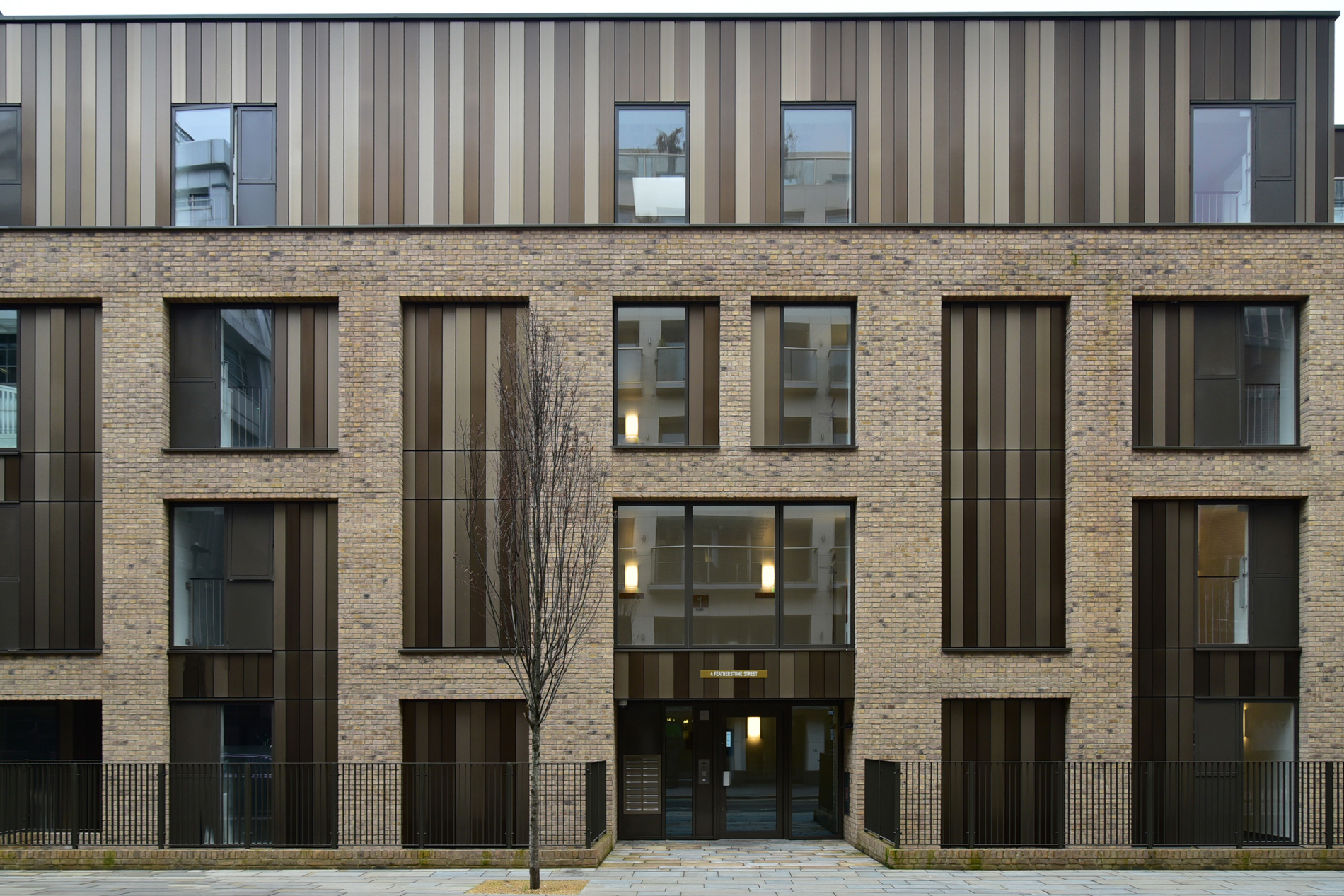 Bunhill Row | London was a residential development project covering 5 floors with a façade surface area of 500m2. The subframe used was RJ Facades EVT system and wall brackets fixed using Ejot Tek screws and FBN II 10/20 A4.