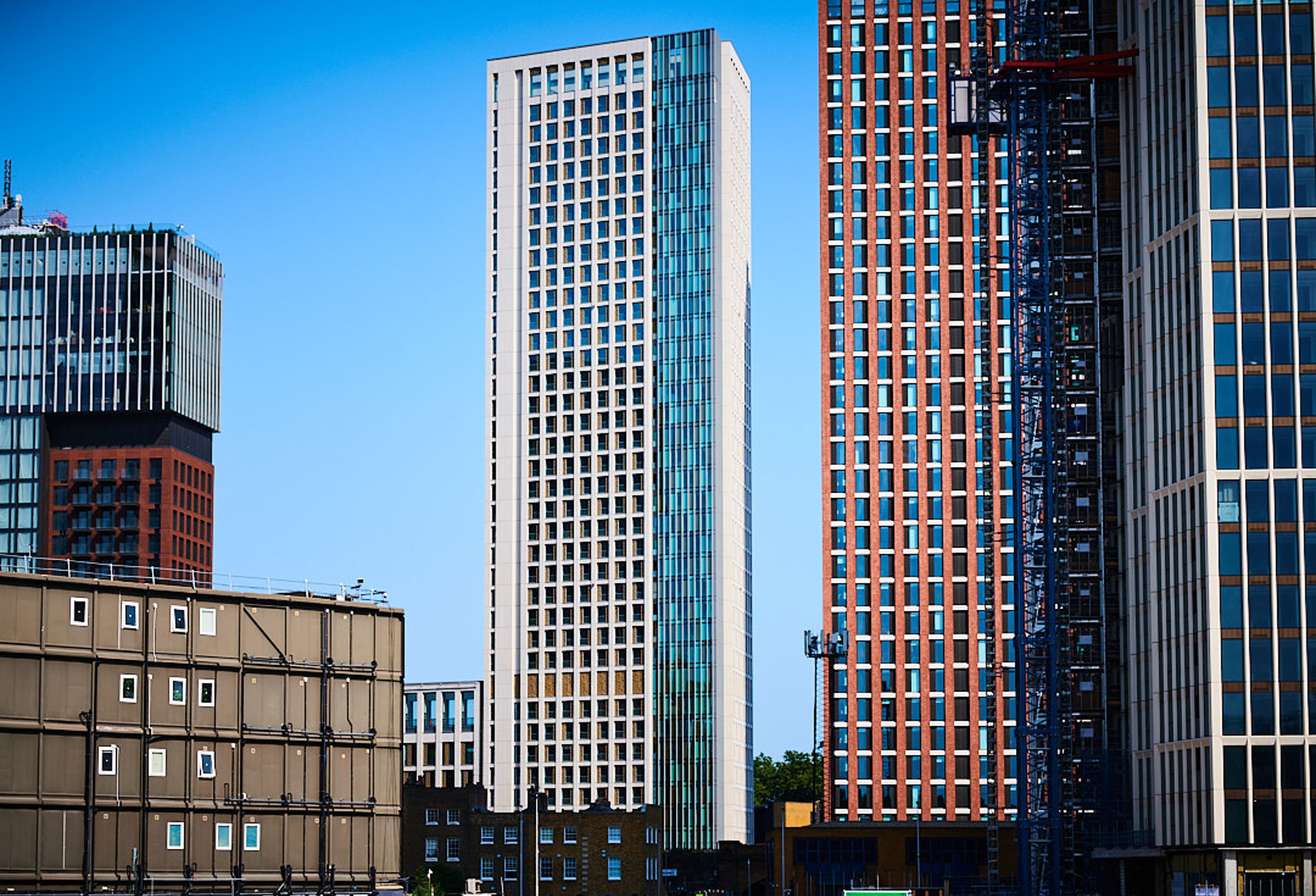 Mile’s street is a mixed-use development in Vauxhall, London. The scheme comprises of a 37-storey student accommodation tower with 454 rooms and a six-storey commercial office building creating 3583m2 of open plan office space. The office block also features a rooftop multi-use games area which is accessible to residents and students. Targeting BREEAM ‘Excellent’ the scheme considers sustainability and wellness in its contemporary workspace. The main façade consisted of curved glass windows, reinforced concrete, and Marley eternity rainscreen panels supported by the RJ Facades Horizontal bracket system with horizontal T rails.